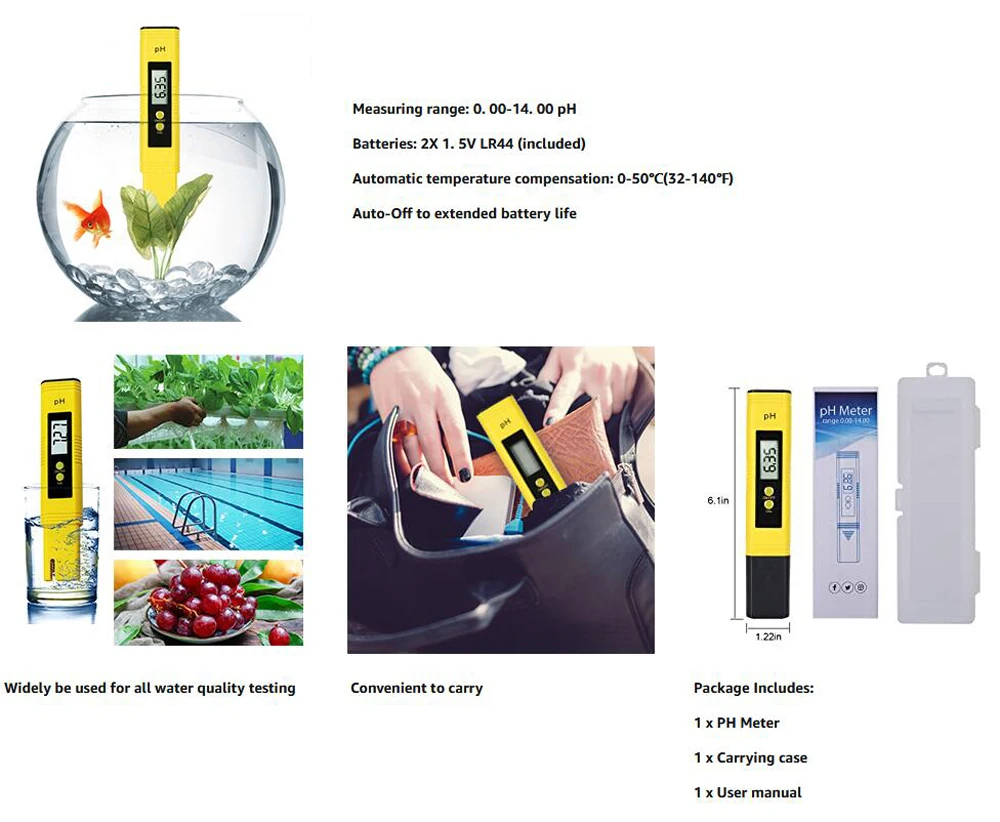 【Application】: Great for all home and laboratory TDS & pH testing applications including aquariums, swimming pools