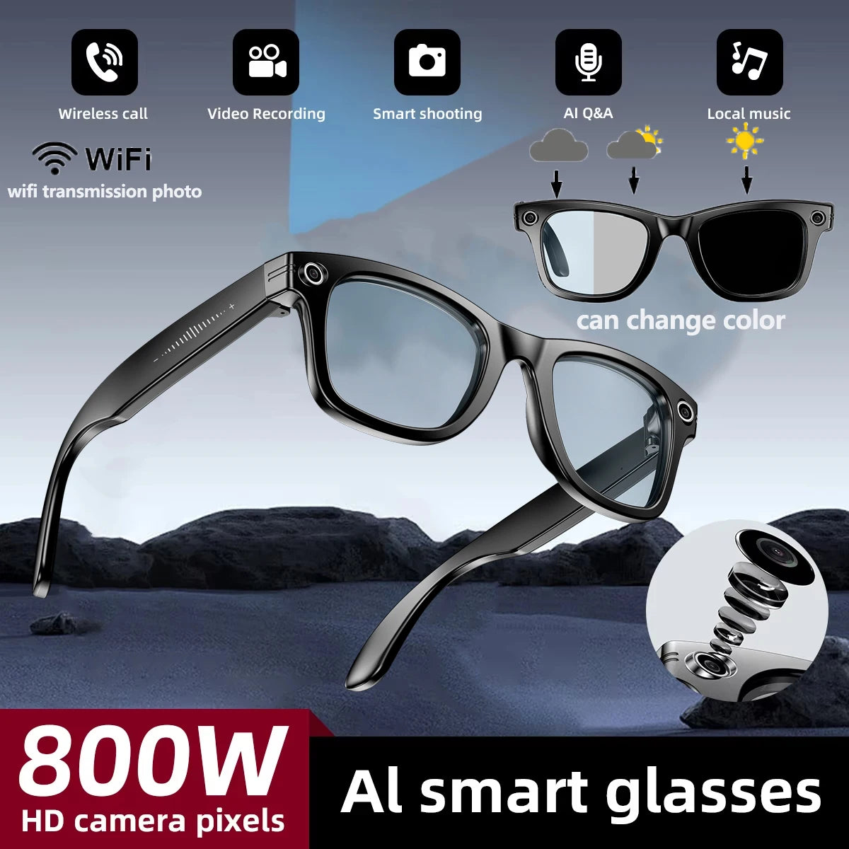 AI Smart Glasses 800W Pixels Camera Video Recording Bluetooth Call Photo Recognition Translation Voice Assistant Sunglasses Men