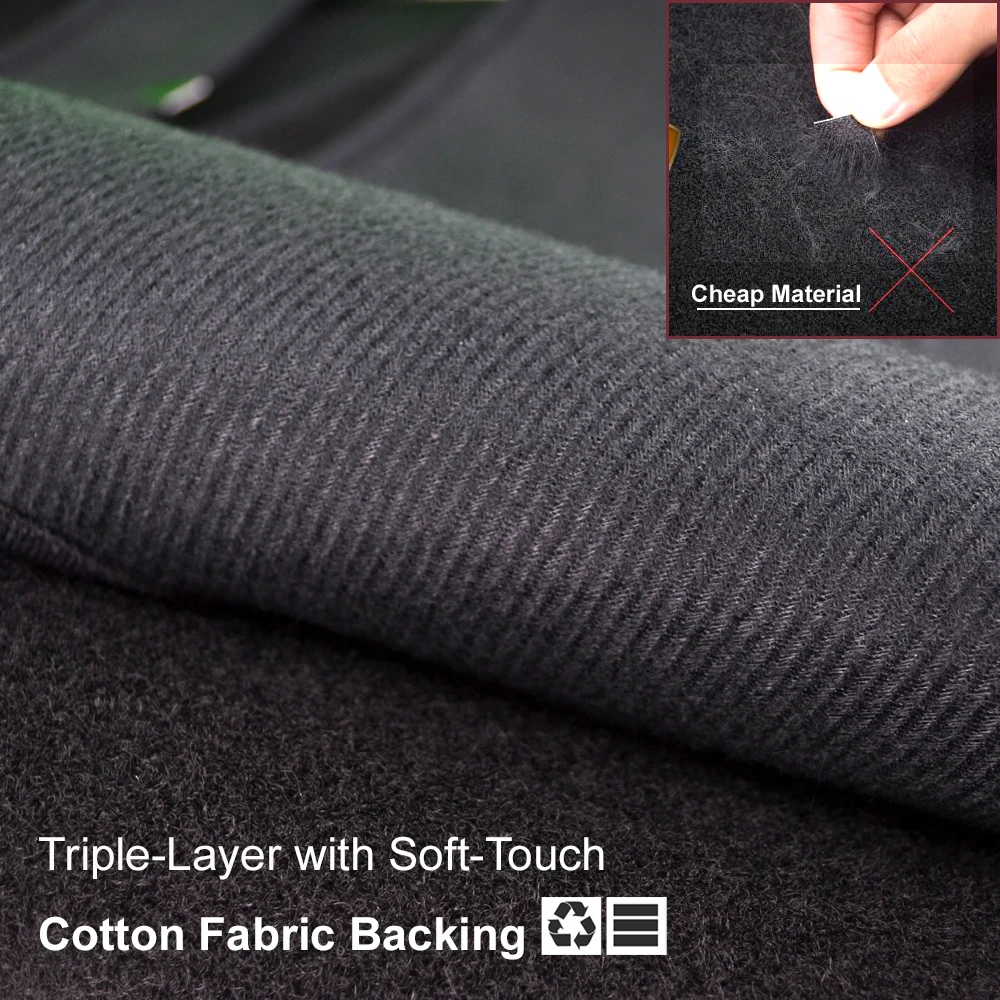 This item is the XUKEY® dashboard mat, which is unique in that it does not have a hard backing. The advanced fabric not only breathes, it also absorbs unwanted toxins that are emitted from the vinyl of the dashboard, which can cause discolouration if left trapped underneath the dashmat.