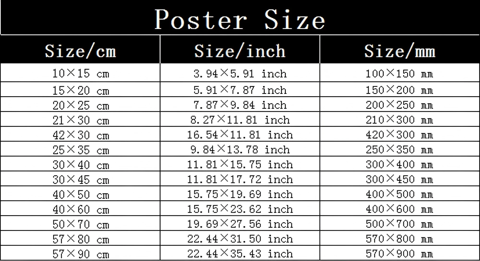 Size 1: 10cmx15cm/15cmx20cm/20cmx25cm/21cmx30cm