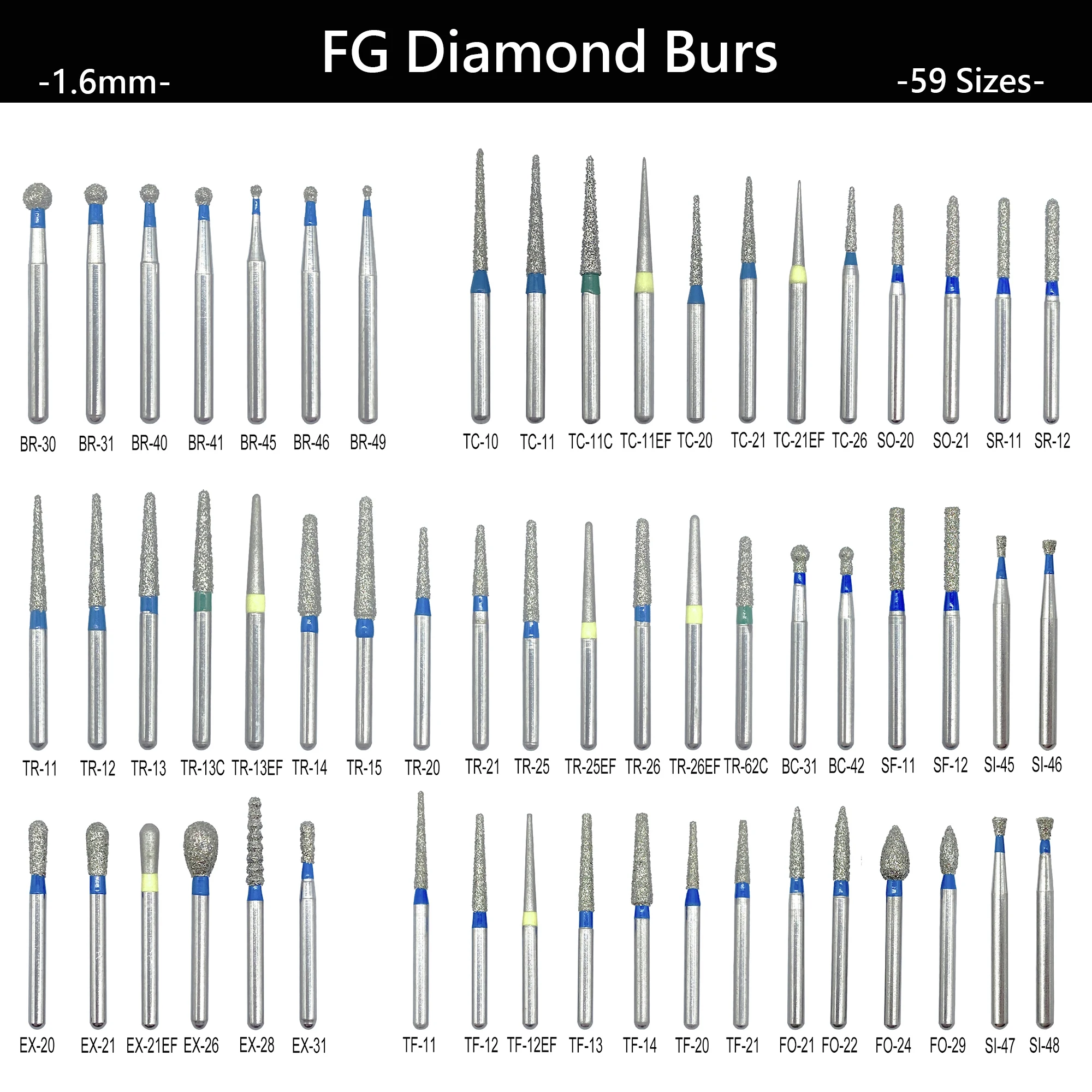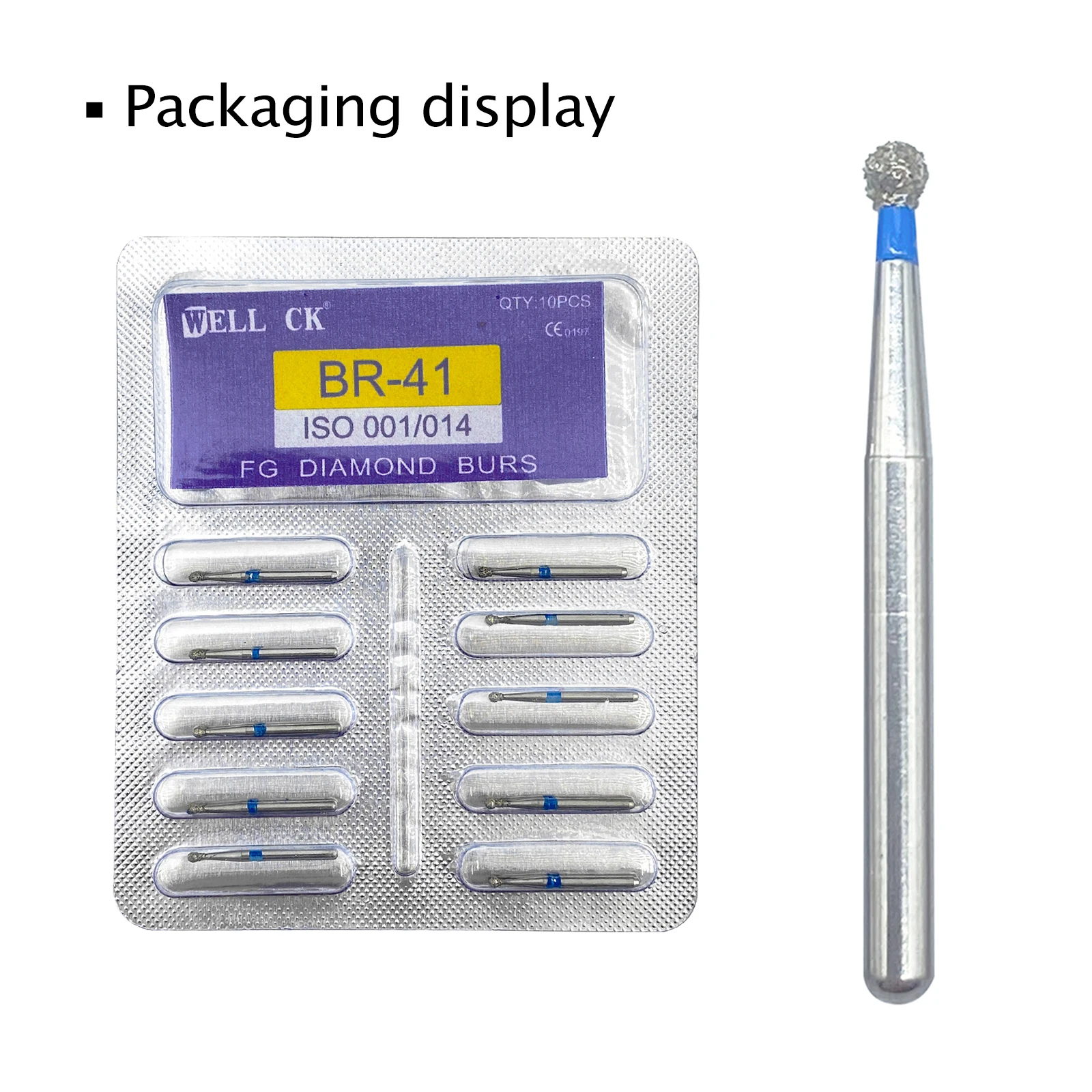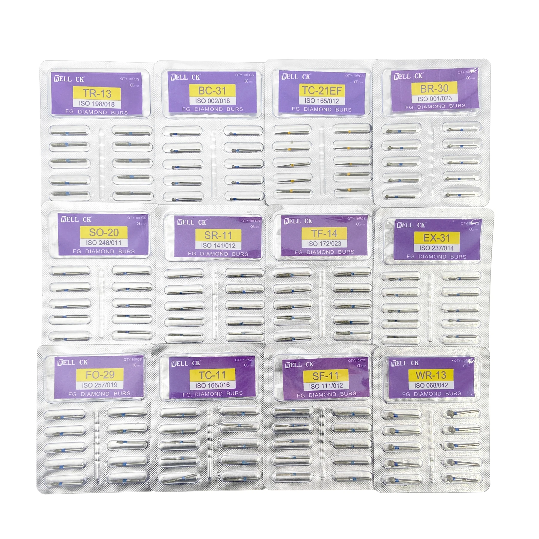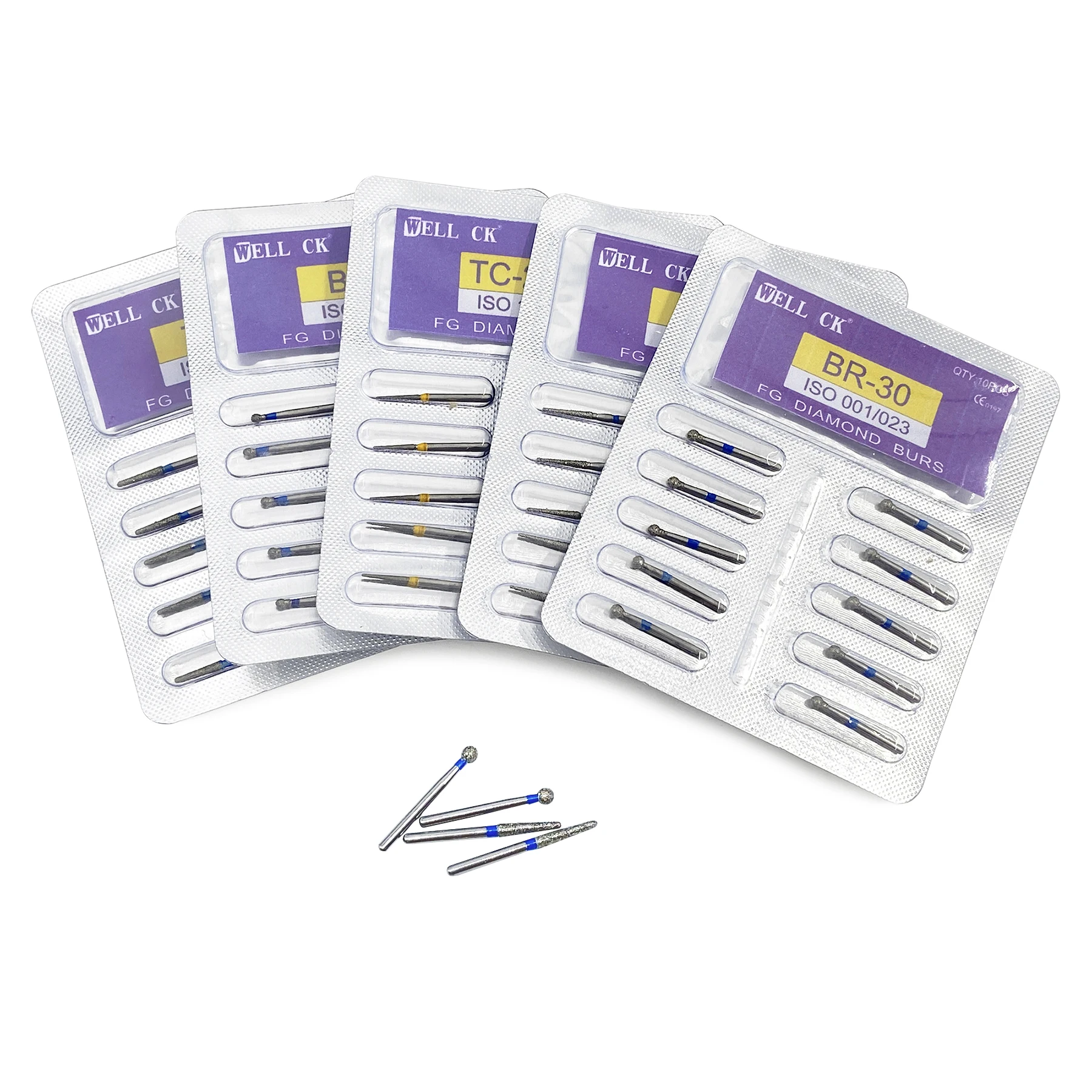 WELL CK 10pcs/Pack Dental Diamond Burs Drill for High Speed Handpiece Dentist Burs FG Series Dia 1.6mm